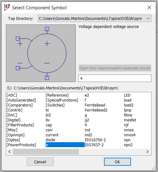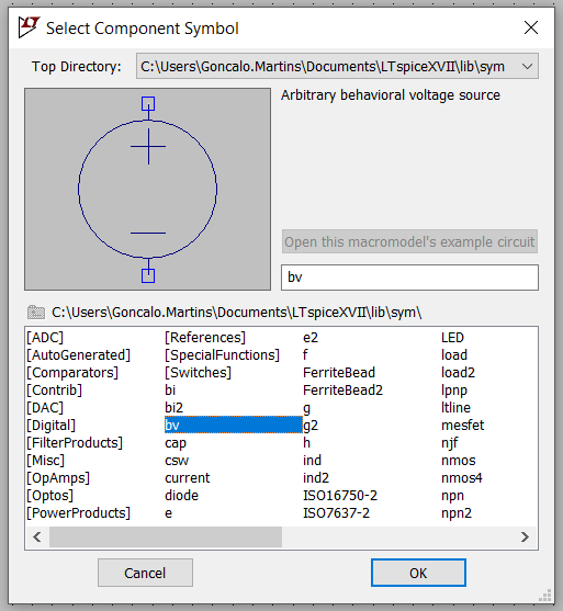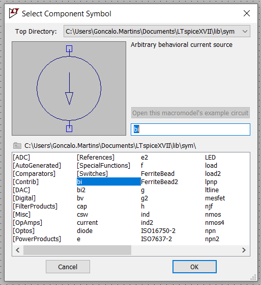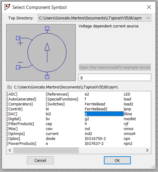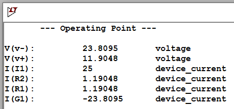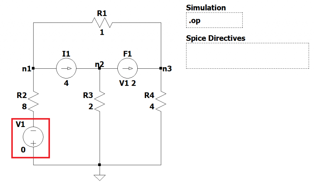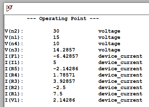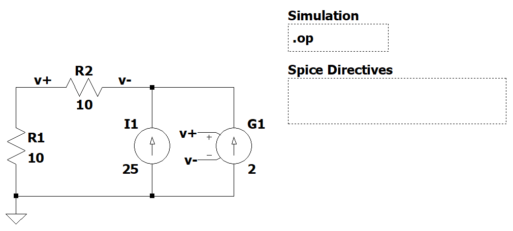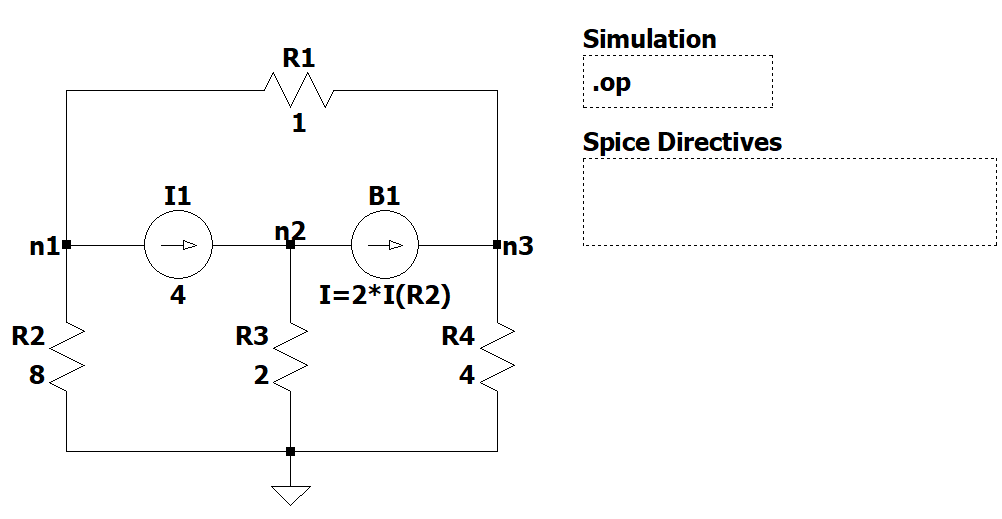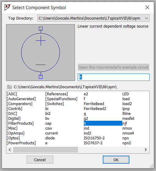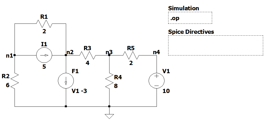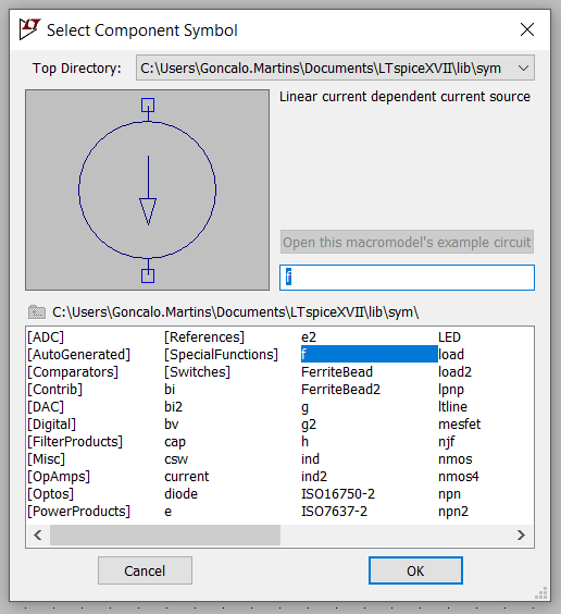 Note: The “f” component requires a current through a voltage source. If the controlled current of your circuit doesn’t come from a voltage source, there are ways to work around this. Check Example 1 under Other Examples to see how to address that issue for a CCCS.