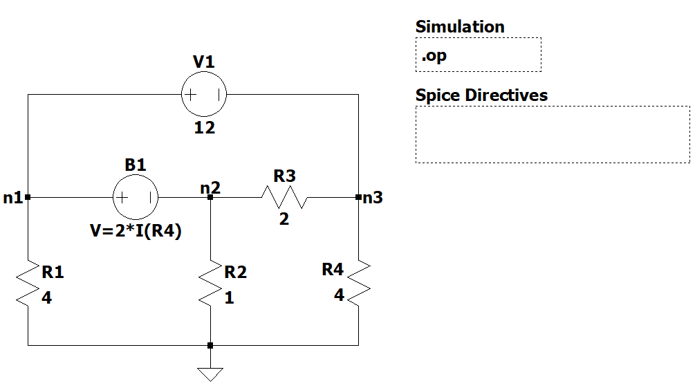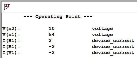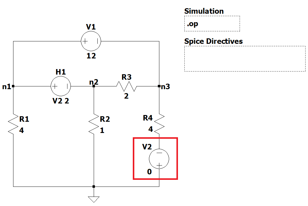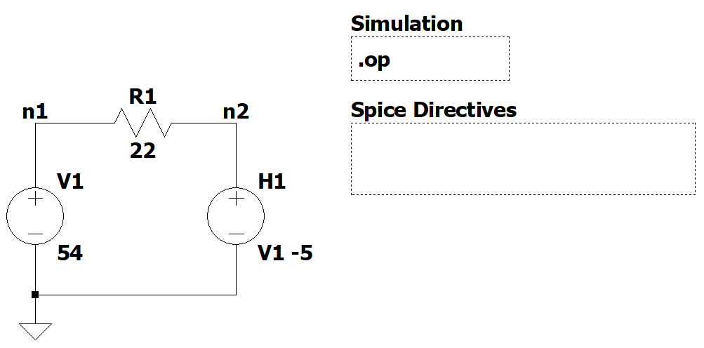 Note: The “h” component requires a current through a voltage source. If the controlled current of your circuit doesn’t come from a voltage source, there are ways to work around this. Check Example 2 under Other Examples to see how to address that issue for a CCVS.