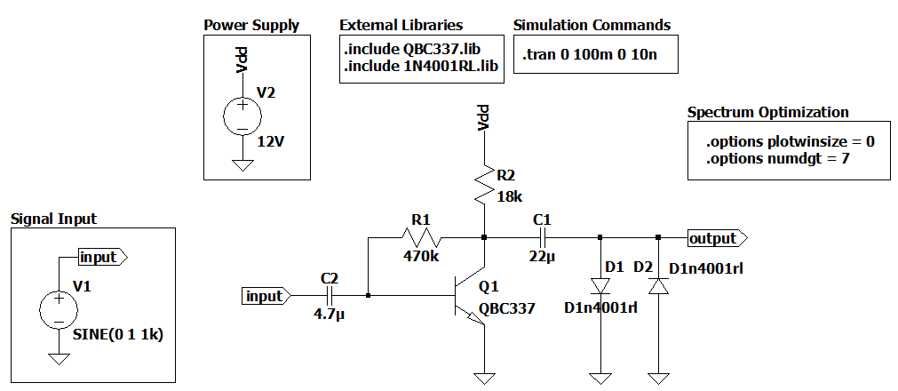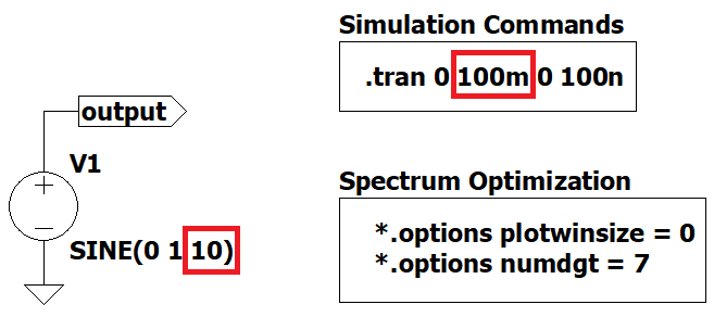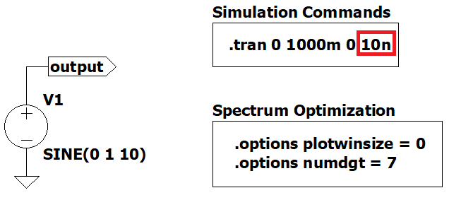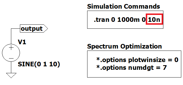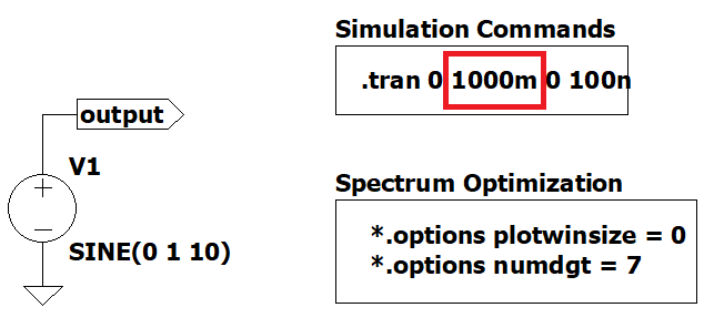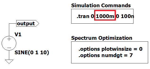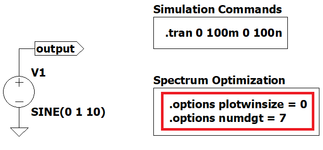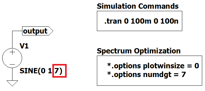 We will be using Figure 1 as an example to change some .options and .tran parameters and see what happens in the spectrum.