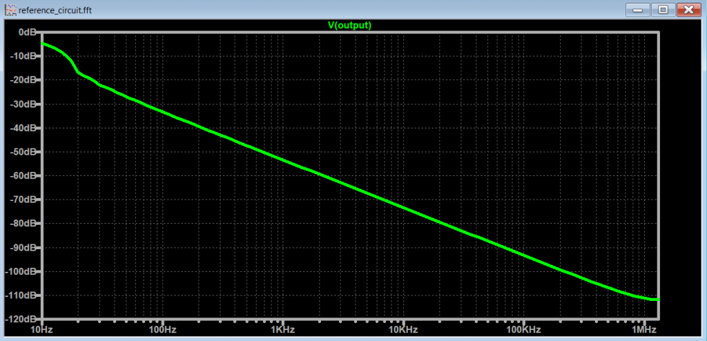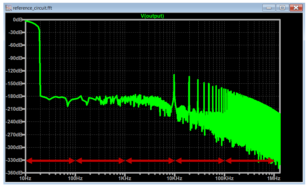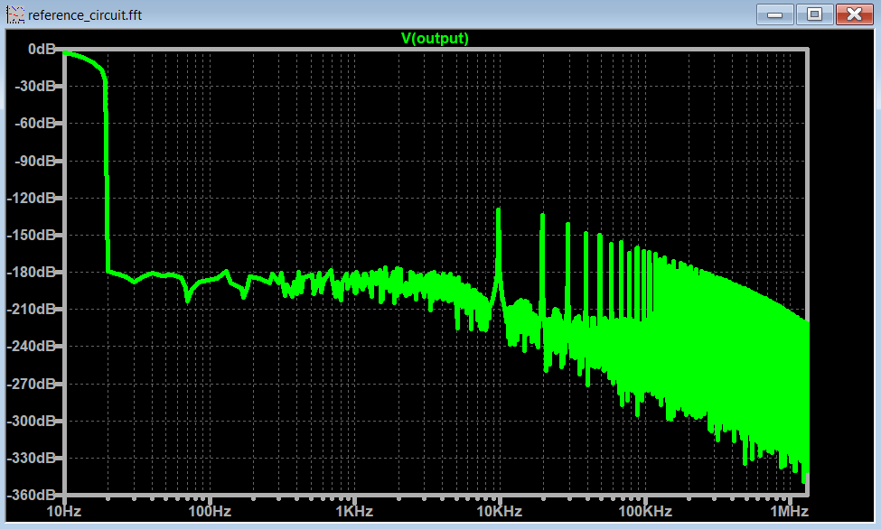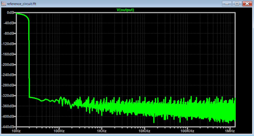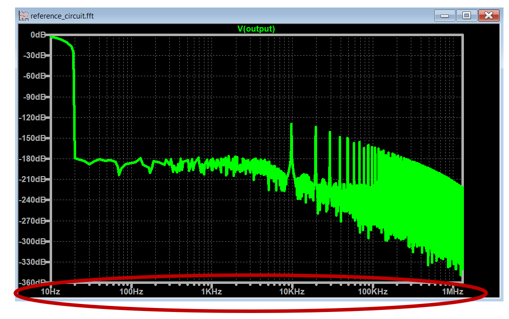 Let’s go back to the original circuit in Figure 1, and uncomment the spectrum optimization spice commands and run the FFT with these settings enabled.
