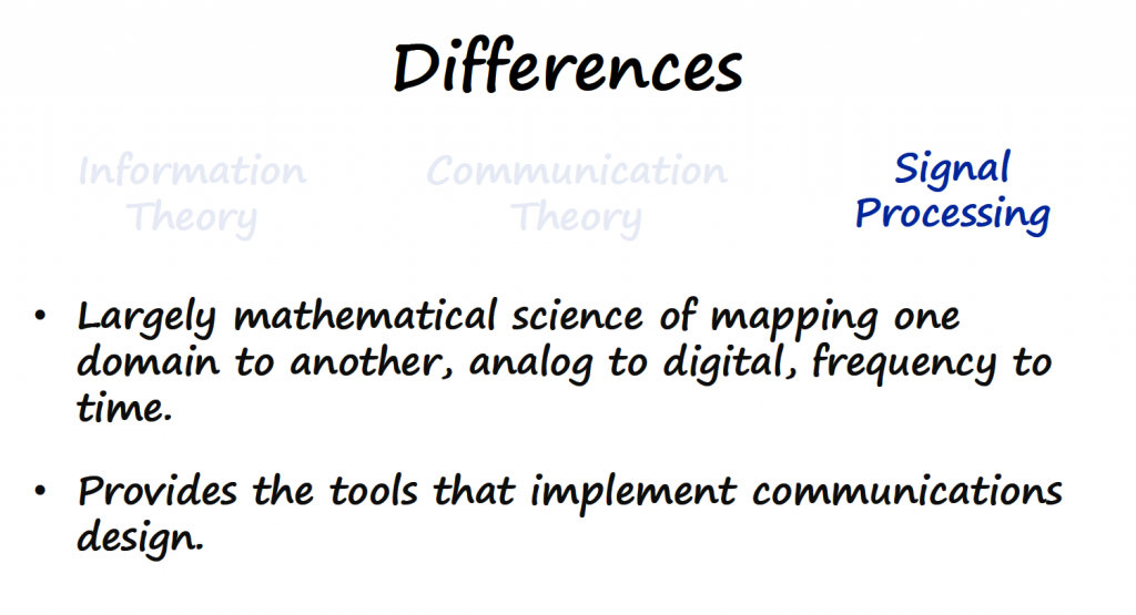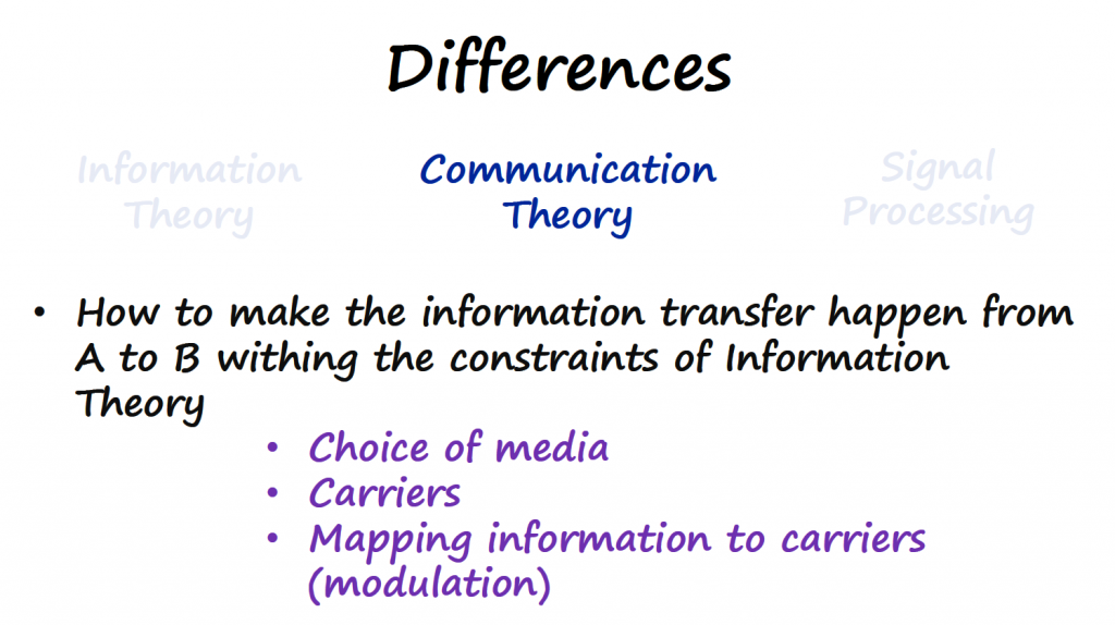 Any digital communication project can contain concepts from these 3 fields at the same time, and not knowing or not being aware of the different concepts covered by each field can make the study of digital communications more difficult.