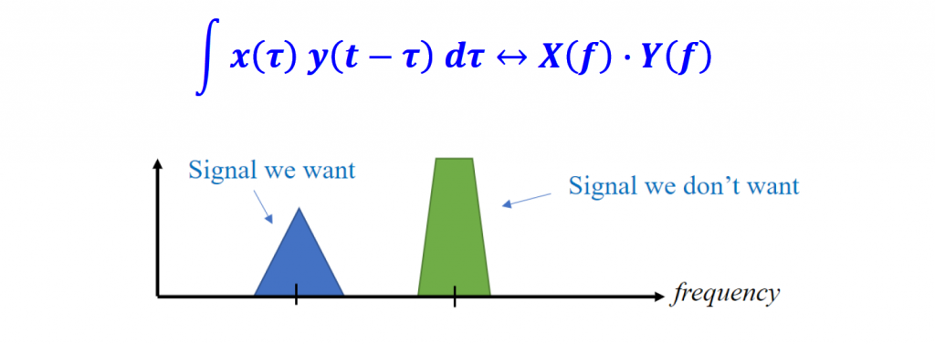 Convolution is widely applied in the time domain when filters are used in the frequency domain to remove unwanted signals from the spectrum.