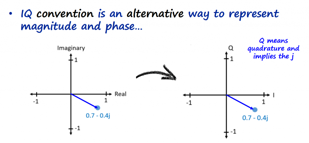 In the previous section we saw that the IQ representation of a complex number is: