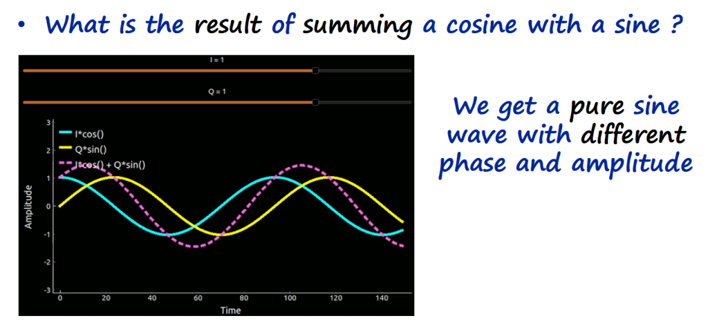 The beauty of this IQ channel concept, is that it is very easy to control the amplitude and phase of the resultant sinusoidal waveform just by controlling two gains, I an Q.