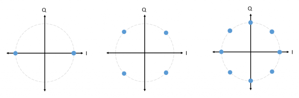 - Quadrature PSK (QPSK, 8PSK, 16PSK)