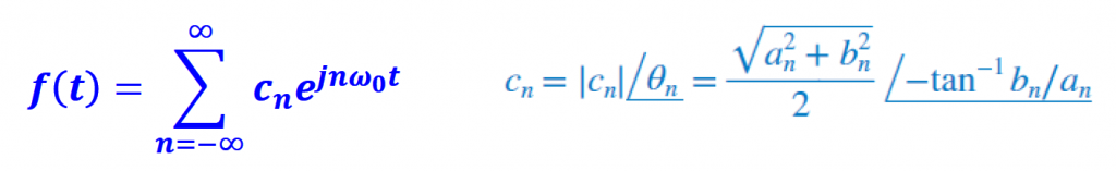 In terms of spectrum for digital communication systems, the exponential form of the Fourier Series is normally used to represent signals in the frequency domain. The reason behind that choice is because IQ channels (technique used by different types of modulation schemes) contain complex numbers that represent positive and negative frequencies. I will cover the different ways of writing the Fourier series on another article, but for now we will use the exponential form.