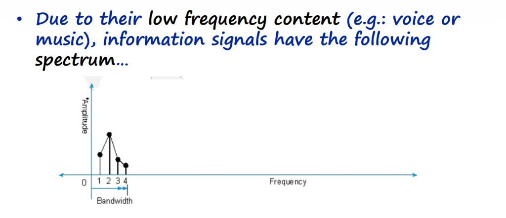 Because most baseband signals contain significant low-frequency content, they cannot be effectively emitted over radio (wireless) links. Instead we rely on carrier modulations techniques to transmit the information over wireless links.