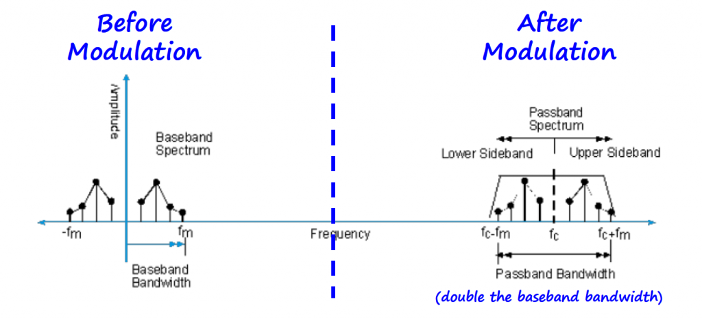 Note: fc is the frequency of the carrier, and fm is the maximum frequency of the information signal.
