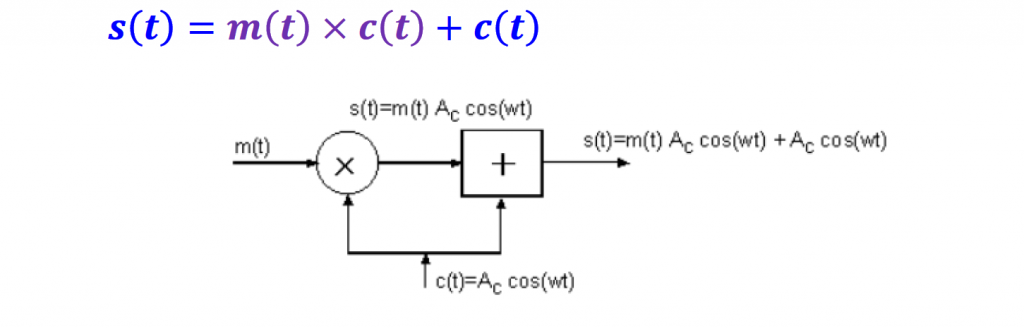 Instead of transmitting just the information signal multiplied by the carrier, we can add the carrier to the product. Adding the carrier to the modulated signal can offer some advantages when demodulating the received signal to recover the information signal.