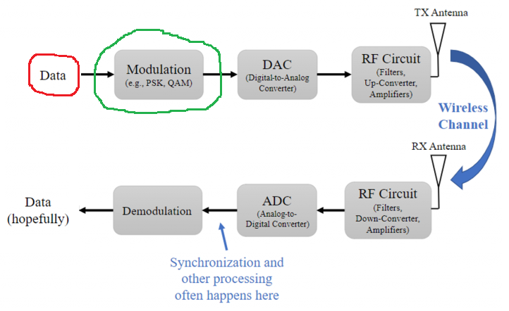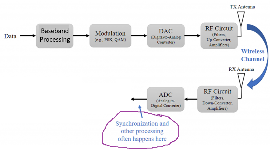 GNURadio Flowgraph <=> Tx-Rx Chain Block Diagram