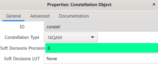We can reuse the GNURadio flowgraph described in the “BPSK” from the PSK Modulation section, and change the constellation to reflect the 16QAM constellation. Everything else on that flowgraph is exactly the same.