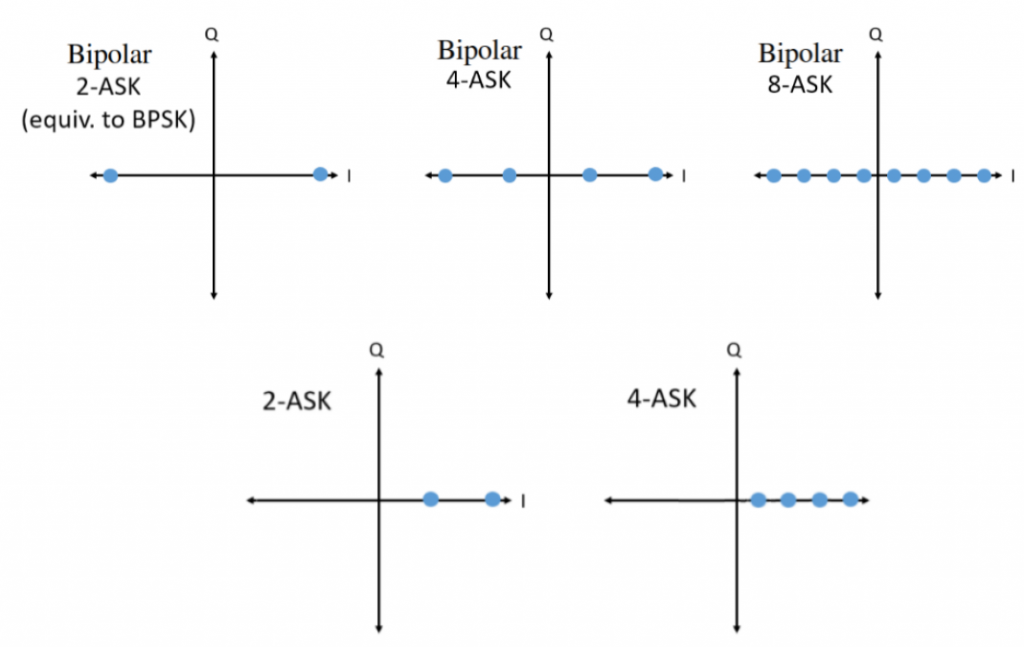 M-ary ASK schemes have the following IQ plots:
