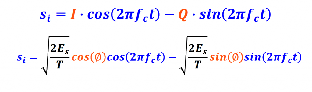 The modulation equation for QAM is a variation of the one used for PSK. In this case, √(2Es/T) is not a constant value anymore.