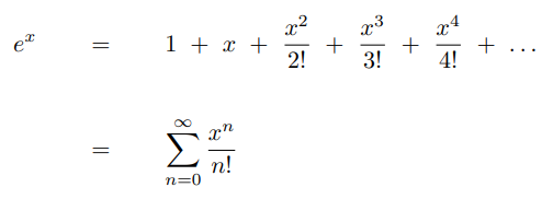 where n! denotes the factorial of n. You can sometimes see this expression written in a more compact notation, called sigma notation (meaning as a summation of many similar terms).