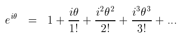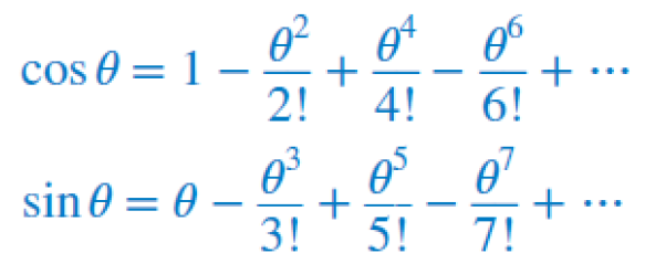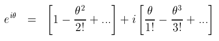 Notice that all we are doing is using the Taylor series from the previous section and substituting x by iθ. Also note that i2=-1 and i3=i2· i=-i and similarly for higher powers of i we get