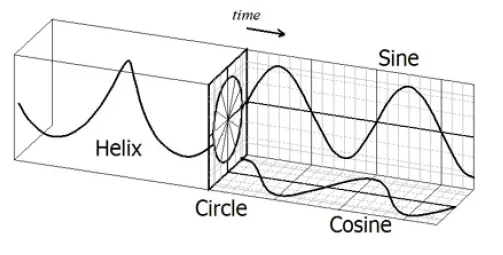 The sine and cosine are orthogonal 2D projections of the 3D Unit Helix (the Unit Circle rotated through spacetime).