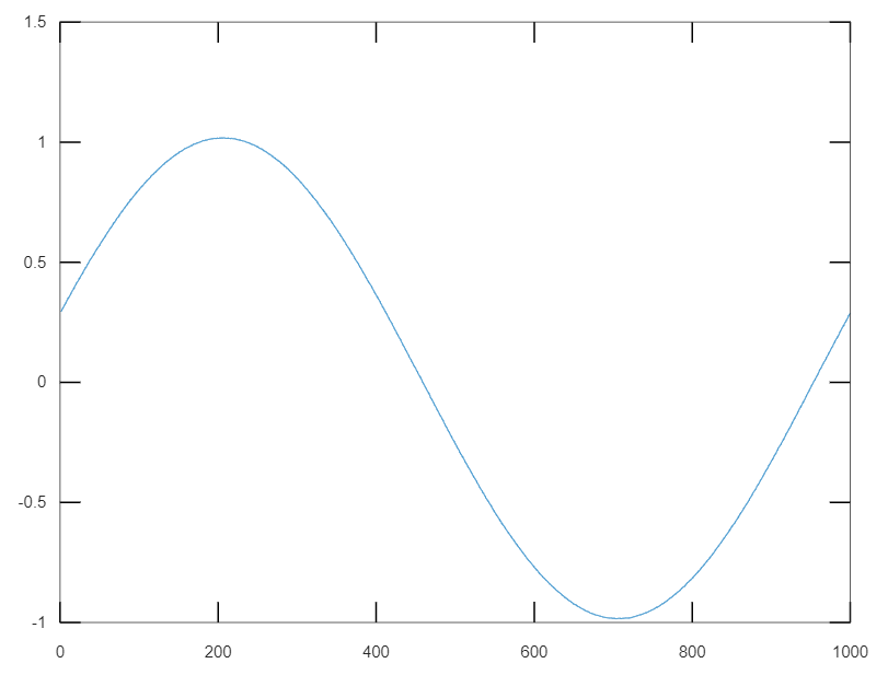 Let’s do a simple test and set the sampling frequency (Fs) to 1kHz and the number of samples (samples_per_channel) to 1000, which means that we will acquire 1 second worth of data. Let’s also set the function generator to generate a sinusoidal wave form at 1Hz. With this parameters we should be able to acquire one full cycle of the input waveform.