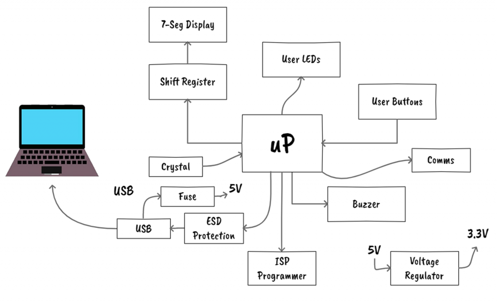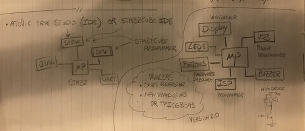It is always good to start with a draft of a system block diagram. In this stage, some of the project requirements get polished and it is a good time to make some design decisions too. I will give some design example decision below.
