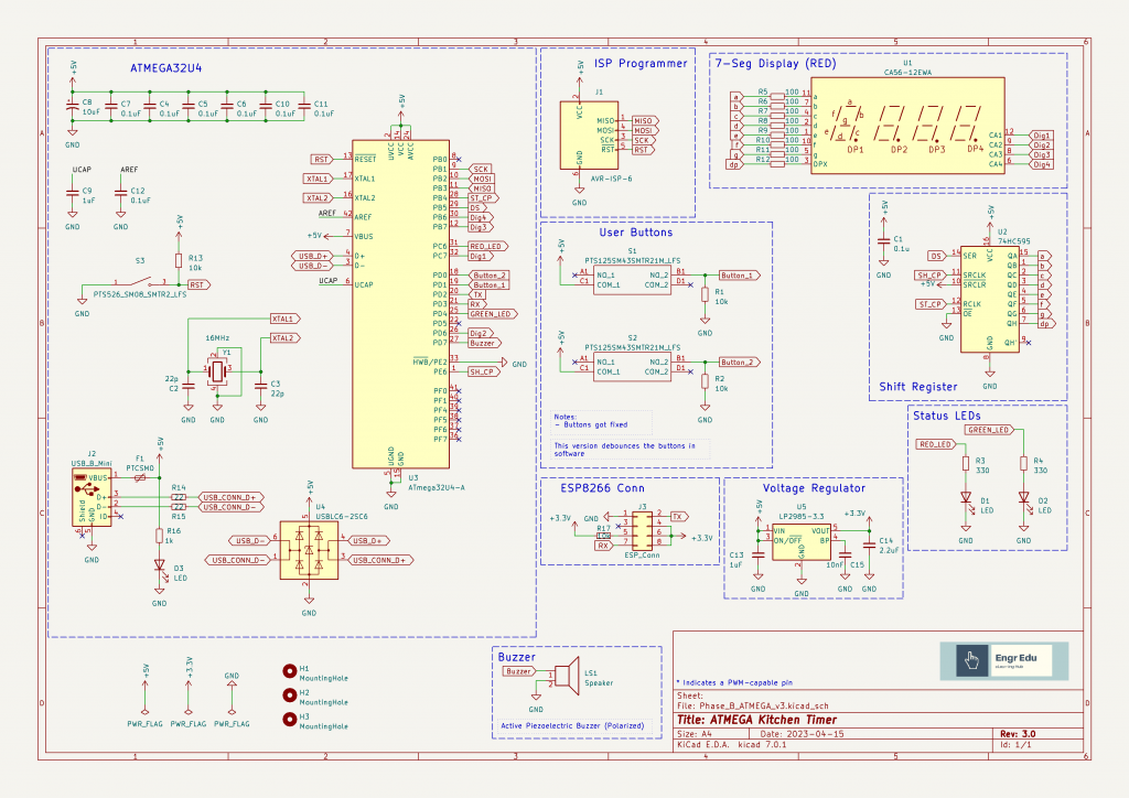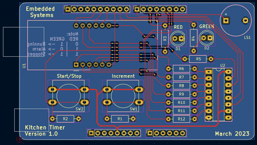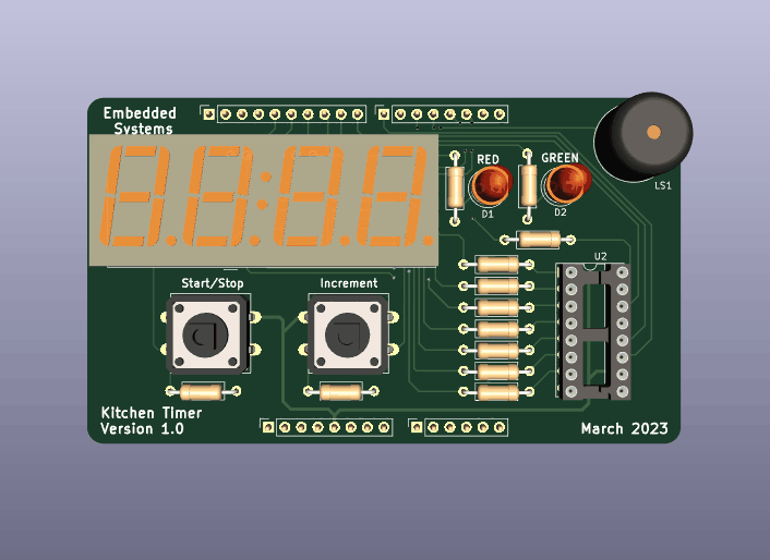 If we want to add additional sensors/actuators (e.g.: IMU, vibration motor, etc) or add other code features to the Kitchen Timer, we probably need to move to a microprocessor that has more GPIOs available and potentially runs faster.