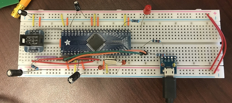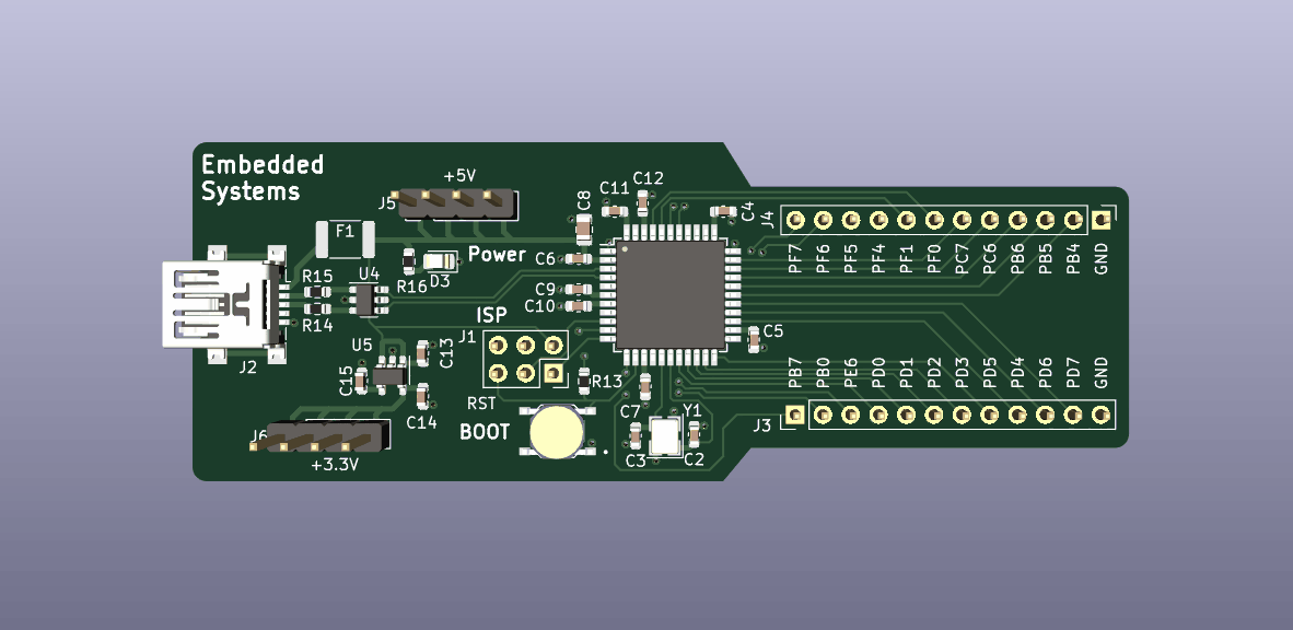 The goal with this project is to build a development board with the ATMEGA32U4 chipset that can be integrated with a breadboard and enable the access to 2 additional GIPO pins (a total of 22 GPIO pins).
