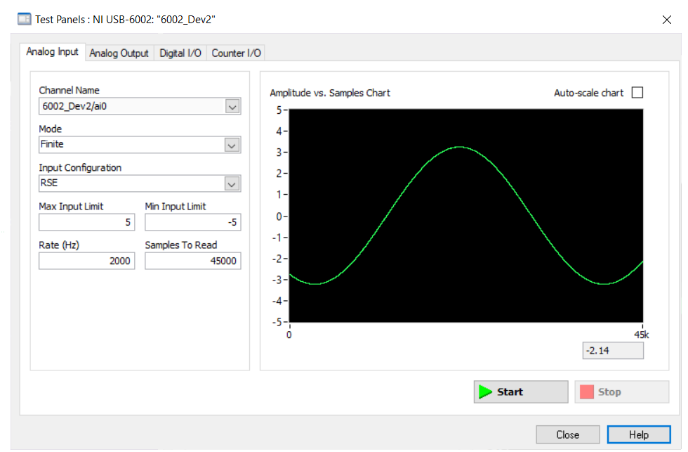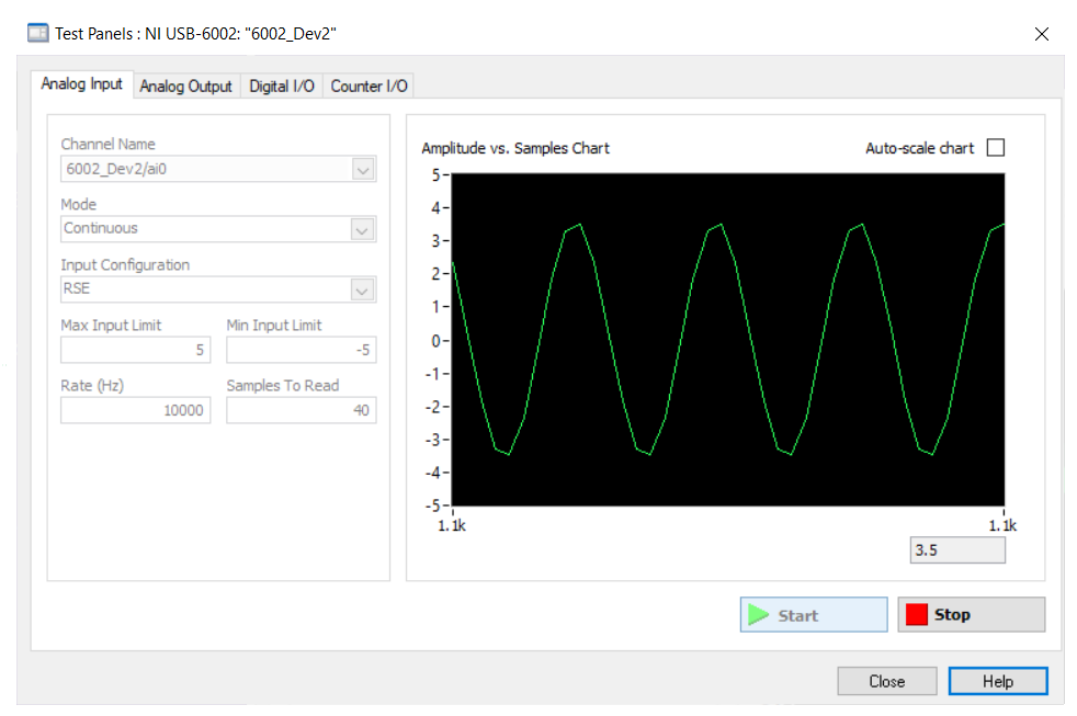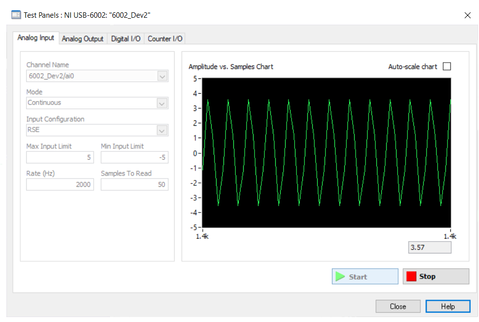 - I am going to use this DAQ to sample the data of the function generator.